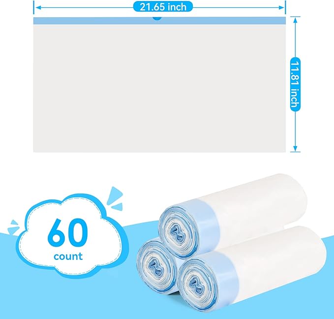 Cat Litter Bags 60 Count, 21.65"x11.8" Drawstring Close Litter Box Liners for Automatic Litter Box,Thick Cat Poop Bags,Easy to Clean,Heavy Duty Robot Bag for Self-Cleaning Box