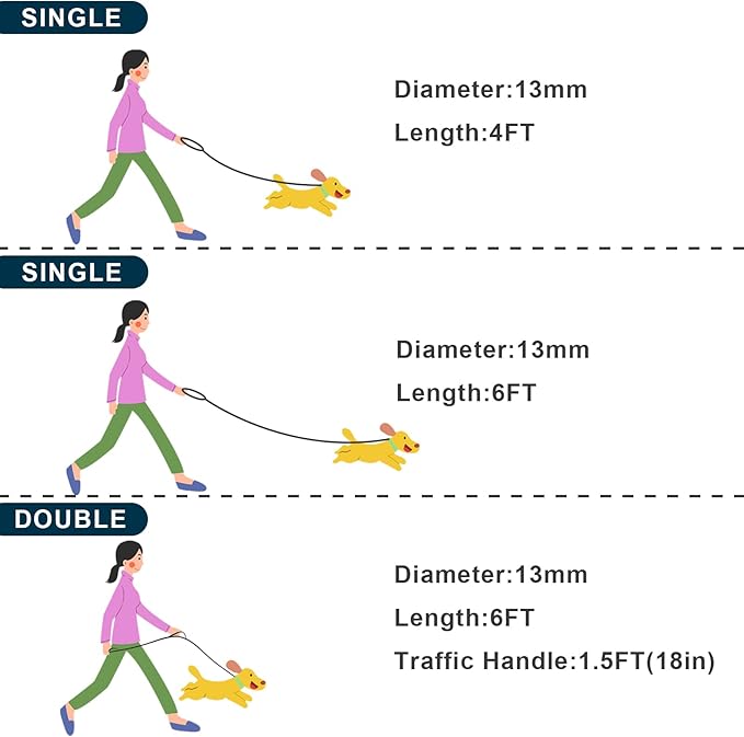 - 【Available in 7 beautiful colors and comes in 2 sizes】4/6 foot dog leash is great for walking, running, hiking or training, and is a perfect balance between freedom and control. Give your dog plenty of freedom while keeping everything under your control.