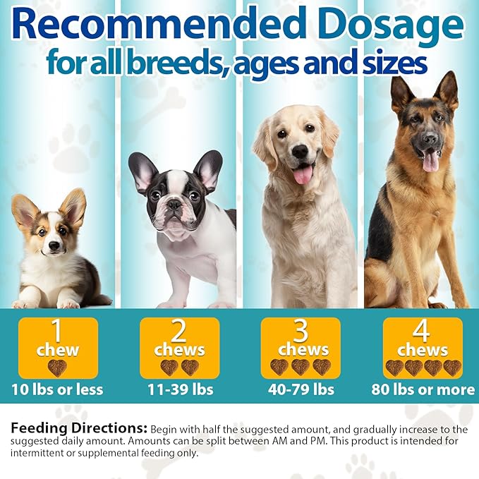 - 200 Chews for Long-Term Support: With 200 chews per bottle, our calming formula is designed for daily use, offering long-lasting support for dogs of all breeds, sizes, and ages. Whether you have a young puppy or a senior dog, the chews provide consistent relaxation and stress relief over time. Carmelie’s dog hemp calming chews are the perfect solution for managing ongoing anxiety and behavioral issues, helping your pet have a happier, more peaceful life!