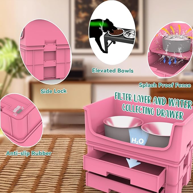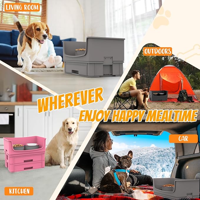 - Specially Designed for Medium-sized Dogs: Our dog feeding station has a feeding height of 6.83 inches and provides one 30oz food bowl and one 43oz water bowl. Specially designed for medium-sized dogs with shoulder heights up to 15 inches, such as Terrier, Bulldogs, etc. The more chaotic the maker, the better the effect of our products, providing clean corners for your room.