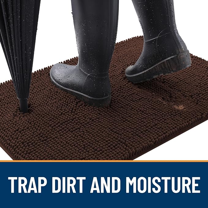 - [ABSORBS MOISTURE AND DIRT] OLANLY indoor dog mat for muddy paws is crafted to efficiently remove dirt and swiftly absorb moisture. With our doormat, your shoes will be instantly clear of any water, dust, grit, muck, sand, sleet, grass, slush, rain, or snow upon entering the house. It's an excellent choice for use as an entryway door mat, a welcoming door mat, or a dirt-trapping mat.