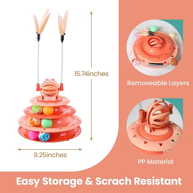 - 【Quality Materials】 Made from odorless PP material, this cat toys for bored indoor adult cats is bite-resistance with smooth slides and no ball jams. Non-slip pads ensure stability, giving your cat a safe play experience
