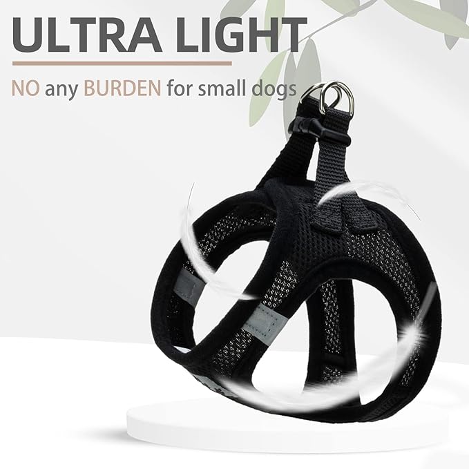 PUPTECK Adjustable Dog Harness Collar and Leash Set Step in No Pull Pet Harness for Small Medium Dogs Puppy and Cats Outdoor Walking Running, Soft Mesh Reflective Vest Harnesses, Solid Black XXS