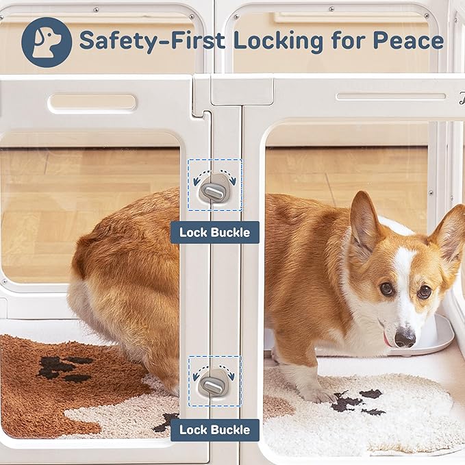- 🐶【Modern Design】Discover the dog play pen indoors, merging modern design with pet comfort. Our clear dog play pen features transparent panels, offering a stress-free, open space for pets. Easily monitor your pets' happiness and safety with this innovative, transparent plastic animal playpen.