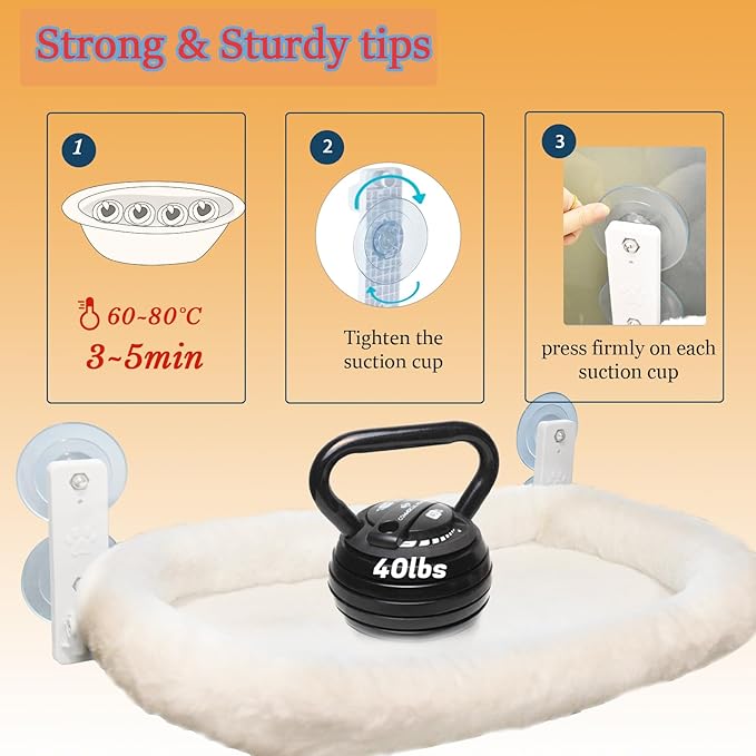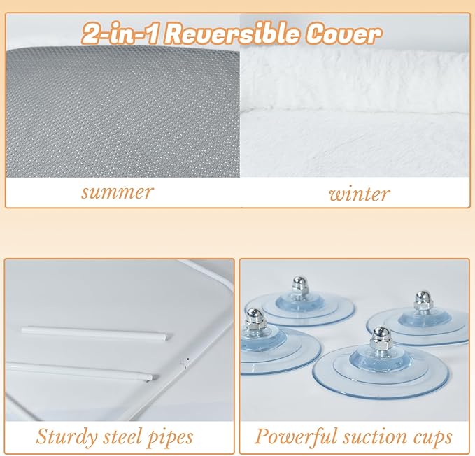 - 【4 strong suction cups + solid metal frame】 - stable and durable! The suction cups lock tightly on smooth windows, holding up to 40lbs (suitable for most cats). The heavy-duty metal frame won’t bend or break, even if your cat jumps on/off quickly. No risk of falling—give you peace of mind.