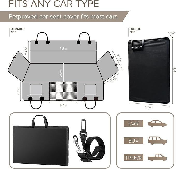- Secure and Stable for a Safe Journey - With 4 adjustable straps, 2 safety anchors and 1 dog car seat belt harness, the dog bed for car ensures anti-slip from all angles, preventing sliding. Dog covers for cars back seat also has visual mesh design allows for optimal airflow, keeping dog comfortable throughout the ride. Dog car hammock with storage pockets could store travel essentials, keeping car organized, best rear seat protector for dogs and dog travel accessories for large dogs