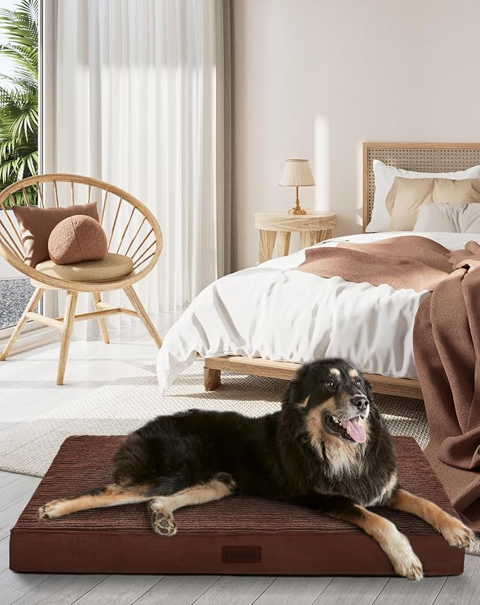 OhGeni Orthopedic Waterproof & Machine Washable Dog Bed for Large Pets, Suitable for Crates, Cat Mat with 25D Egg Crate Foam, Non-Slip Bottom & Removable Cover, 41 Inches(Brown)