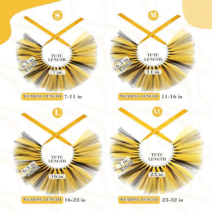 - Tulle Tutu: the length of the tutu dress for dog is about 23 inch to 32 inch and the width is about 7 inches, they are suitable for Boxer, German Shepherd, Bully Kutta, Great Pyrenees, Cane Corso and more, please check the size before purchasing