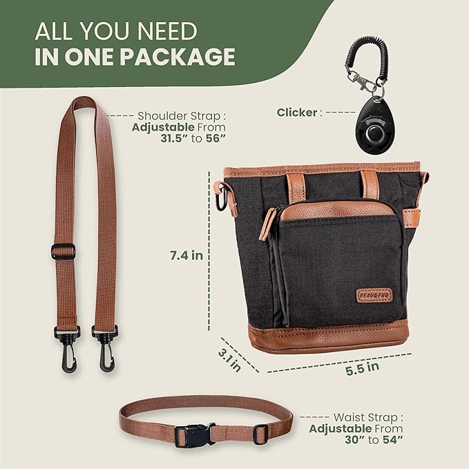- CONVENIENT & EASY TO WEAR: Wear the BEAU&FUR dog treat pouch as a fanny pack for a secure, comfortable fit. The adjustable strap fits securely around your waist, providing hands-free convenience during active dog training or outings with your pet. A great gift for pet lovers who enjoy spending quality time with their furry friends.