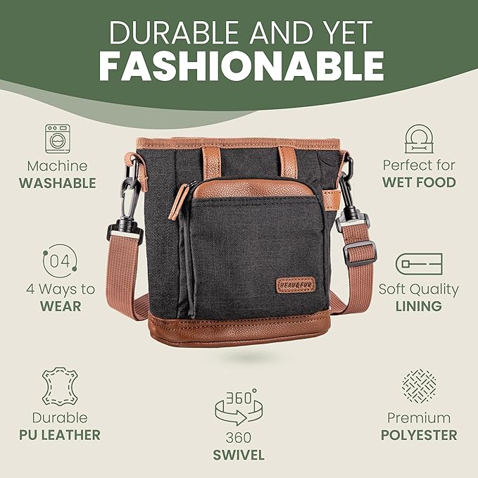 - DURABLE & STYLISH DESIGN: This dog treat pouch features double stitching and a metal buckle for enhanced durability. Its sleek, elegant look and premium material ensure long-lasting use, making it the ideal accessory for dog training or daily outings. An excellent choice for gifts for dog owners who appreciate both style and functionality.