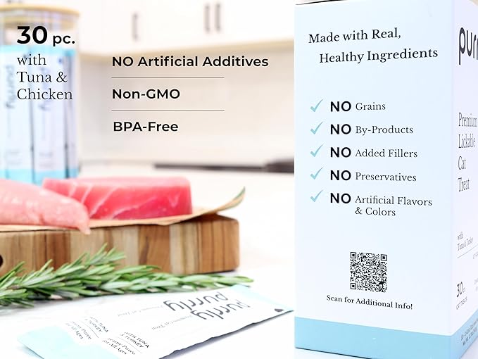 - FUNCTIONAL NUTRITION - Purrly goes beyond just taste and aroma, being enriched with essential nutrients, amino acids, vitamins, and minerals. This combination creates a comprehensive and functional treat that nourishes your cat from within, not just satisfying their taste buds.