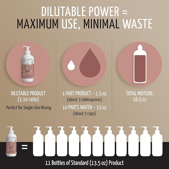- Convenient Bottle for Effortless Use: Made in the EU; comes in a manageable 13.5 fl oz size bottle and is dilutable 1:10; fits perfectly with your dog grooming and puppy essentials supplies; simplifies daily coat care and enhances pet supplies for a healthy, vibrant coat; must-have dog shampoo or shampoo for cats