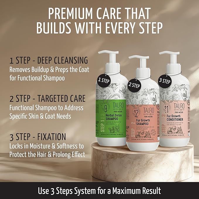 Tauro Pro Line Deshedding Dog Shampoo, Natural Pet Wash, Coat Regrowth Formula for Sensitive Skin & Shedding Control, Deodorizing for Smelly Dogs (Fur Growth - 13.5 Fl Oz)