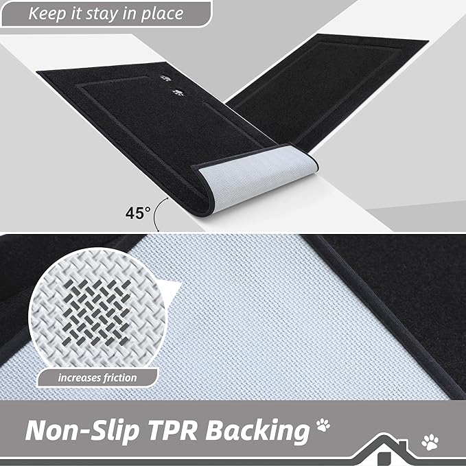 - Soft and Non Slip:Soft and cozy Polyester fibers is comfortable to walk barefoot or provide your pet with a resting place to sleep and play on.Our front door rug is tough and fibers are no shedding. Our entry rug are made of non-slip TPR backing with good grip, so muddy mats for dogs can stay in places and prevent trips and falls,no matter how your pets push on it