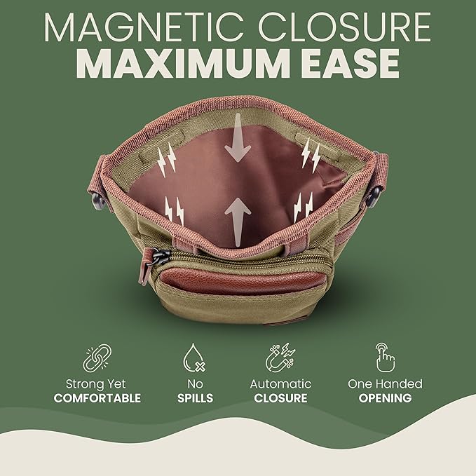 - DURABLE & STYLISH DESIGN: This dog treat pouch features double stitching and a metal buckle for enhanced durability. Its sleek, elegant look and premium material ensure long-lasting use, making it the ideal accessory for dog training or daily outings. An excellent choice for gifts for dog owners who appreciate both style and functionality.