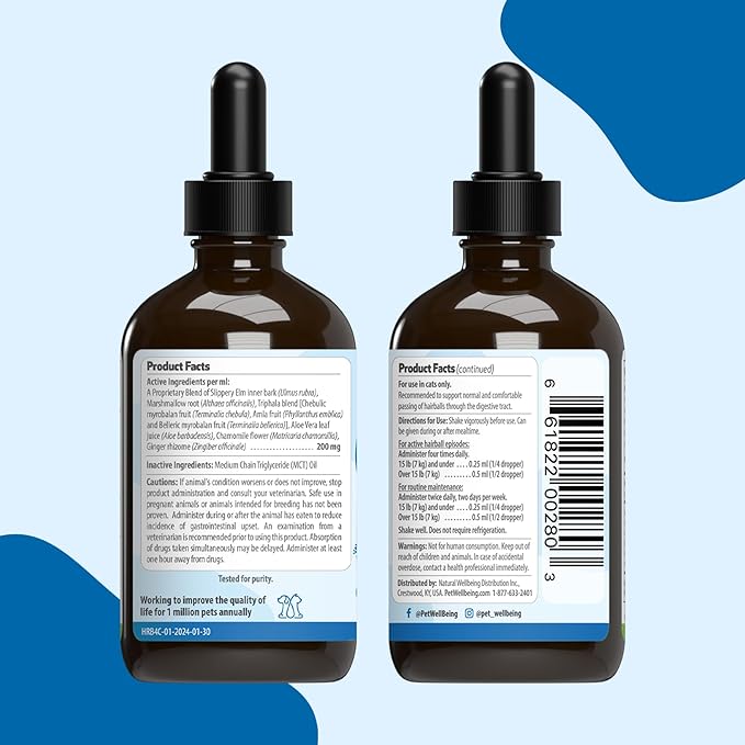 Pet Wellbeing Hairball Gold for Cats - Holistic Hairball and Digestive Care, Normal Elimination, Slippery Elm, MCT Oil, No Mineral Oil - Veterinarian-Formulated Herbal Supplement 4 oz (118 ml)