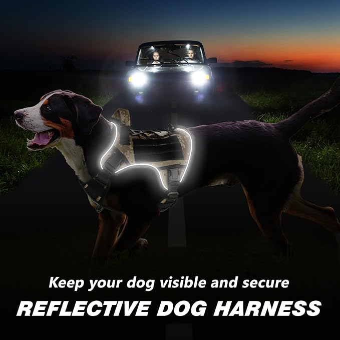 WINGOIN Tactical Dog Harness for Large Dogs, Heavy Duty No Pull Dog Harness with Handle, Adjustable Reflective Military K9 Big Pet Vest for Husky, Doberman, Walking, Hunting, Camo (XL)