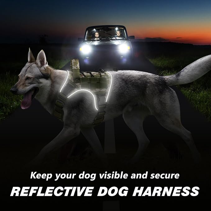 WINGOIN Tactical Dog Harness for Medium Dogs, Heavy Duty No Pull Dog Harness with Handle, Adjustable Reflective Military K9 Pet Vest for Pitbull, Female, Male, Walking, Hunting, Green Camo (M)