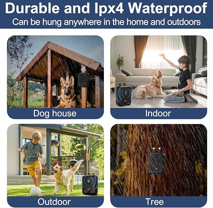 - 🏡【DURABLE & WATERPROOF DOG SILENCER】: This anti dog barking device has an IPX4 waterproof casing to withstand all kinds of bad weather, so you don't have to use the dog barking control devices because of the weather, no matter in sunny, rainy, or snowy days, our bark stopper can stand up to the test, and you can rest assured that the dog deterrent devices is safe to use outdoors.