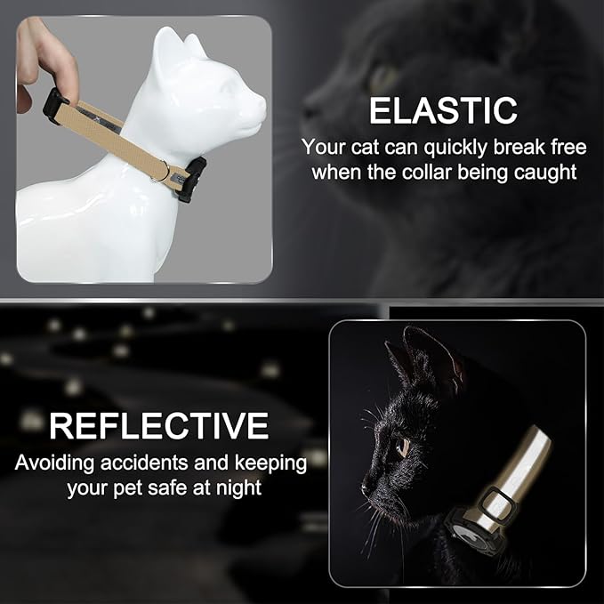 Reflective AirTag Cat Collar, Integrated Cat Tracker Collar with Air Tag Holder and Bell, Safety Elastic Band Cat GPS Collars for Girl Boy Cats, Kittens and Puppies (Khaki,S)