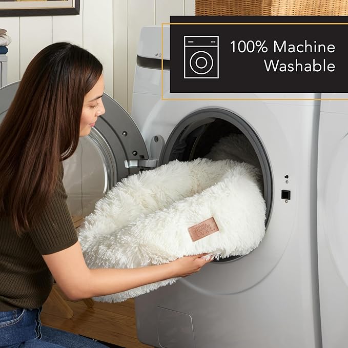TOWN & COUNTRY LUXE CuddleTown Fuzzy Solid Donut Pet Bed, Soft, Cozy & Calming, Water Repellent, Non-Slip Bottom, 100% Machine Washable, Cream, Medium 28"x28"x7" Round