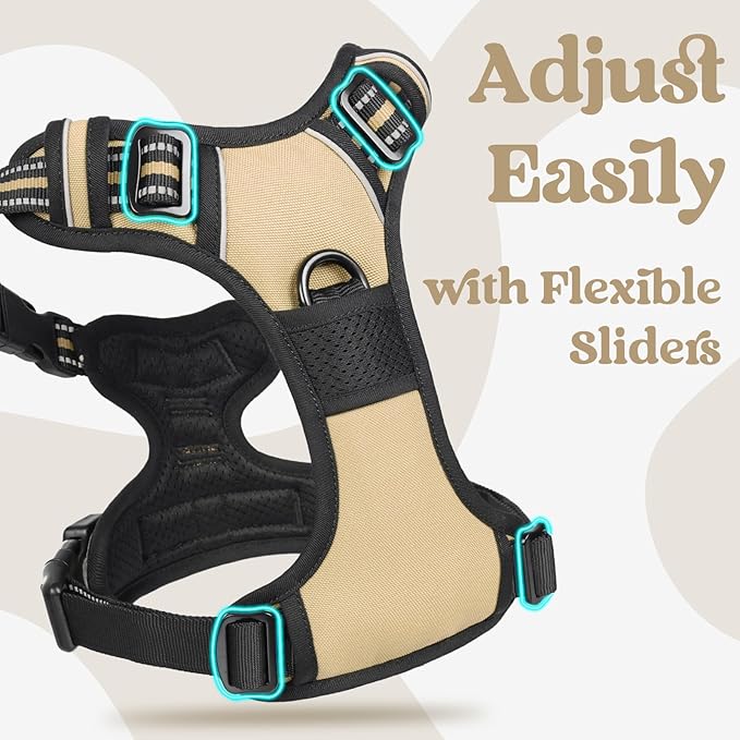 rabbitgoo Dog Harness Small Sized, No Pull Pet Harness with 3 Buckles, Adjustable Soft Padded Vest with Control Handle, Walking Reflective Pet Vest for Small Dogs, Beige, S