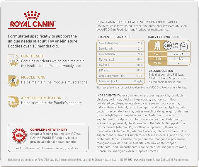 - FORMULATED FOR PUREBRED POODLES: Royal Canin Poodle Adult Wet Dog Food is designed to meet the nutritional needs of purebred Poodles 10 months and older