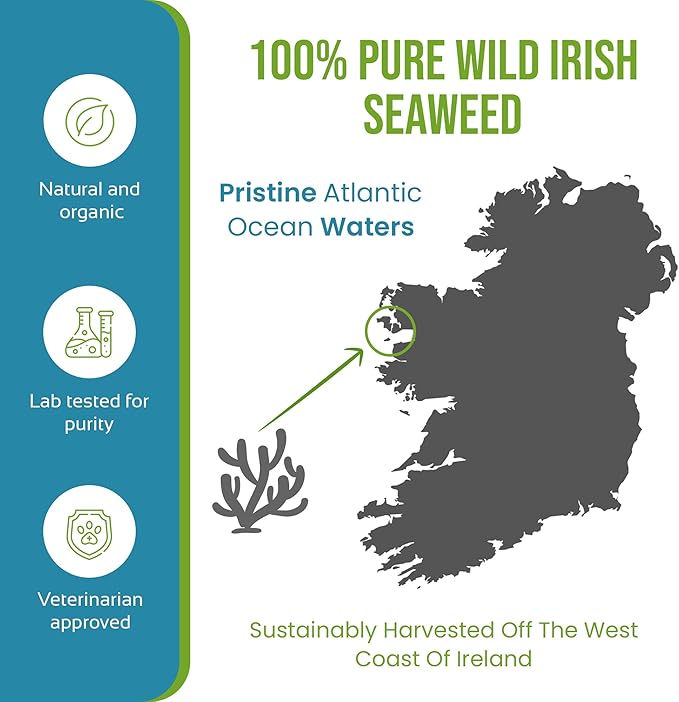 - ✅ Finest Ingredients: Harvested from pristine Atlantic waters off Ireland's coast, our pure wild-harvested seaweed for dogs delivers unmatched quality. Made exclusively from premium brown Irish seaweed, our natural kelp for dogs provides essential vitamins and minerals to transform your pet's dental health. Experience the difference pure, single-origin ingredients make.