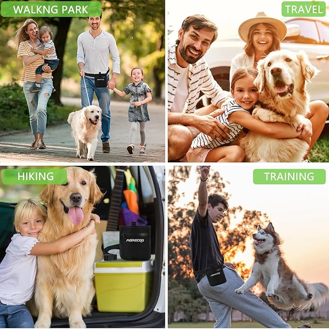 - Easy To Use — dog treat pouch is designed to fit your everyday use when training your pets. It features a magnetic closure, allowing quick and one-handed access to your pet's favorite treats. And a front zipper pocket to secure personal items!