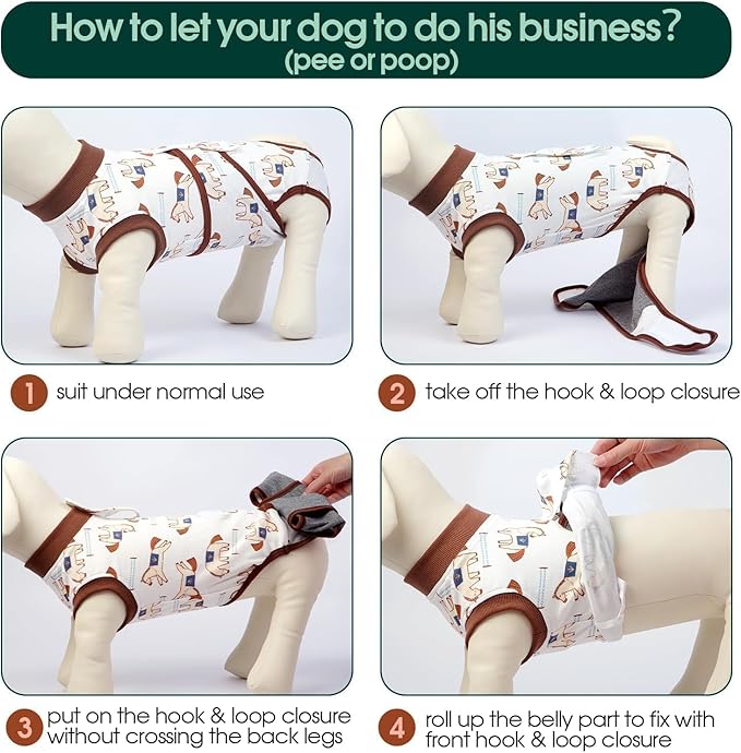 - RECOVERY SUIT for MALE FEMALE DOGS: Suitable for spaying and neutering, with an adjustable back length and closure for easy donning and doffing. Machine washable, easy to clean and dries quickly to ensure optimal hygiene for your pet during recovery