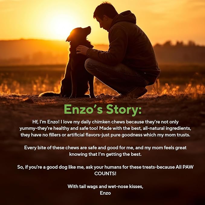 - ππ‘π¦π£ππ₯ππ ππ¬ ππ‘ππ’, π πππ πͺππ§π ππ’π©π ππ’π₯ πππ ππ’ππ¦ : Every single bottle carries the legacy of Enzo, our founder's beloved dog, whose journey inspired this chewable dog joint supplement. After dealing with mobility issues, we developed this formula to bring Enzo back to joy, and now we share it with your dog!