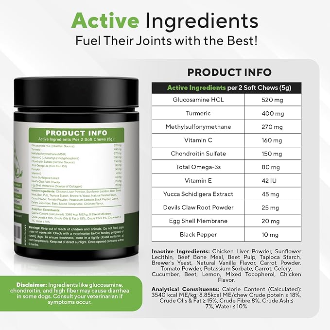 - π©ππ§-ππ£π£π₯π’π©ππ ππ‘ππ₯πππππ‘π§π¦ ππ’π₯ πππππ§ππ¬ ππ’ππ¦: Rich in Vitamin C, turmeric, glucosamine, MSM, Omega 3s, and Chondroitin Sulfate, our dog mobility supplement chews are 3rd party tested and approved by veterinarians. Spoil your furry friend with a potent, and pure hip support supplement.