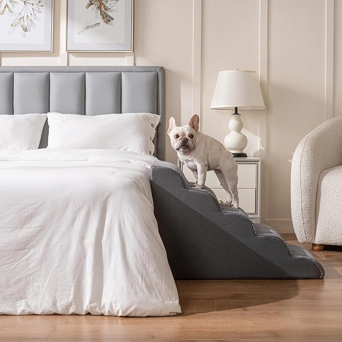 Pet Stairs for High Beds Small & Large Dogs & Cats – High-Density Foam Steps with Removable, Machine-Washable Cover – Lightweight, Portable Dog and Cat Staircase for Beds, Couches, and Sofas, 5 Tier