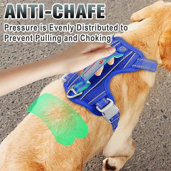 BARKBAY No Pull Dog Harness Large Reflective Dog Harness with Front Clip and Easy Control Handle for Walking Training Running with ID tag Pocket(Sapphire Blue,L)