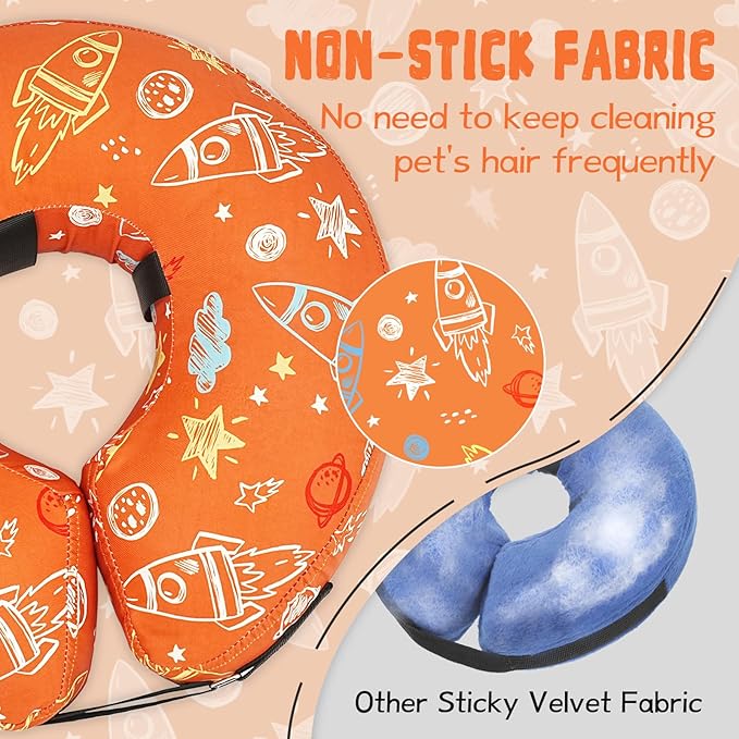 - Non-Stick Fabric - Unlike typical velvet collars, this one has a special non-stick fabric on the outside. This means less cleaning of pet hair. When you need to clean it, just unzip and take off the outer cover. The soft collar is comfortable for your dog after surgery and can even be used as a dog neck pillow. It helps them sleep better and forget the pain.