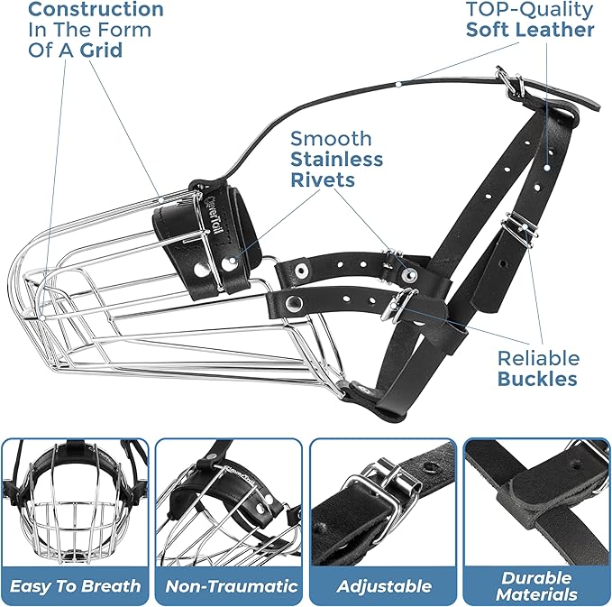 - Safe & Premium Materials: Handcrafted from genuine leather and durable, smooth steel, this cage muzzle for dogs ensures superior safety, comfort and long-lasting quality.