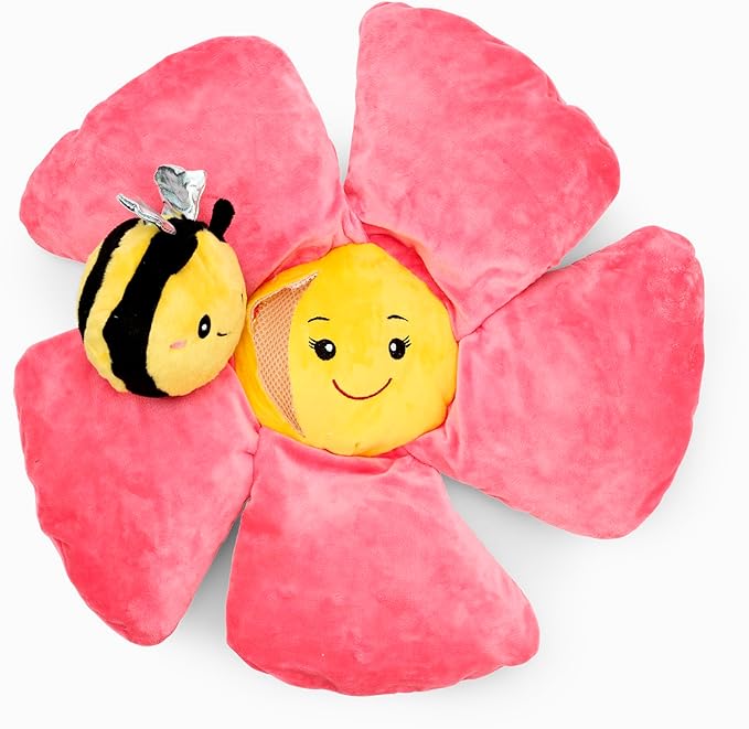 Flourish Pets 3 in 1 Multi-Layer Chew Toy for Active Dogs | Non-Toxic BPA Free Double Stitched Soft Fabric Exterior Dog Toys | Long-Lasting Dog Plush Toys - Large Pink Poppy 17"