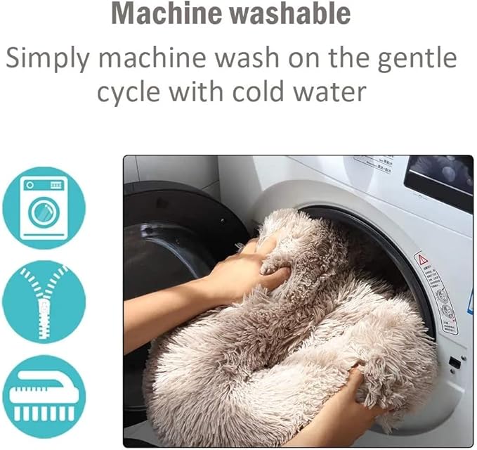 - Notice: This round cat bed is best gift for dogs/cats who love to curl up. Cat bed is stored and shipped compressed, rolled and vacuum sealed in a vacuum bag. Please pat to make the cat bed completely fluffy before use. wait for a few hours patiently and manually adjust the cat bed to the desired shape. Just put it in the washer when you want to clean it. The whole bed is safe in the washer and dryer (Hand wash or machine wash on gentle cycle. Tumble dry, low heat).