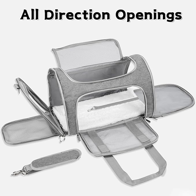 - Airline Approved & Safty:Can be placed under the seats of most airplanes(Four non-slip feet on the bottom to prevent movement), and comfortably on the seat next to you in a car or bus.It has a adjustable shoulder strap.Can also be fastened to the car seat with a safety belt or shoulder strap to keep your pet safe.