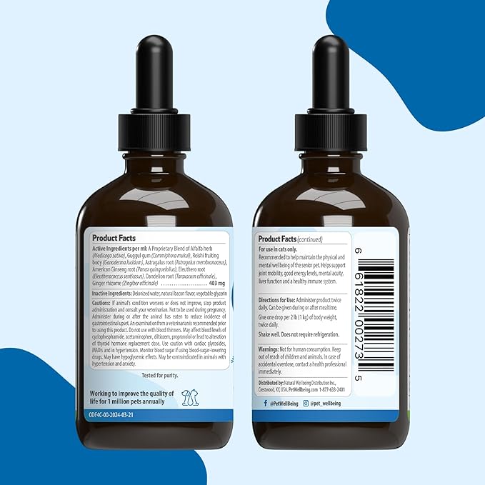 Pet Wellbeing Old Friend for Senior Cats - Supports Immune System Health, Joint Mobility, Healthy Energy Levels, Alfalfa, Reishi - Veterinarian-Formulated Herbal Supplement 4 oz (118 ml)