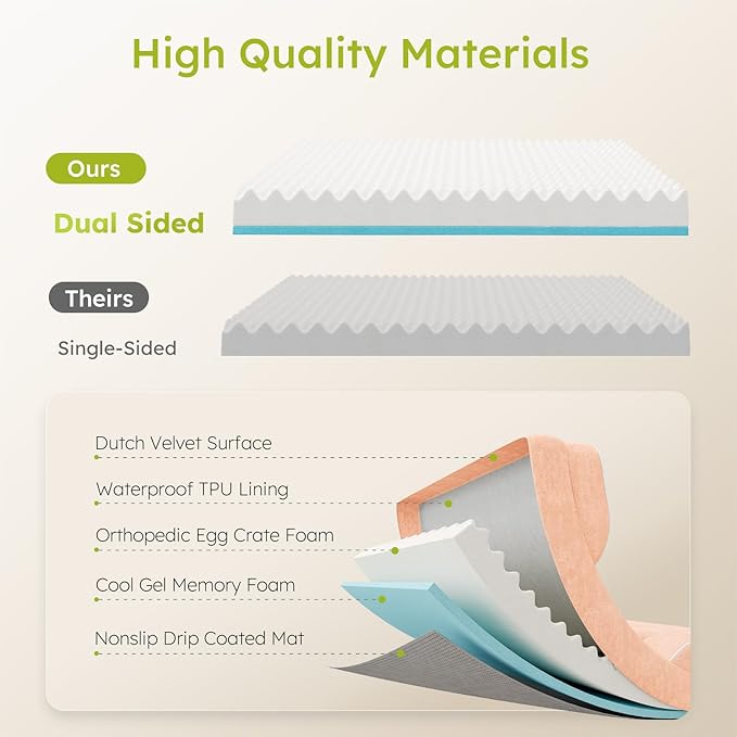 - High Quality:A generous layer of cooling gel foam in our dog bed for dogs ensures a blissfully cool rest during hot days.The luxurious Dutch velvet offers a soft, plush touch that is gentle on pet's nose and paws, perfect for anxious pets seeking calmness