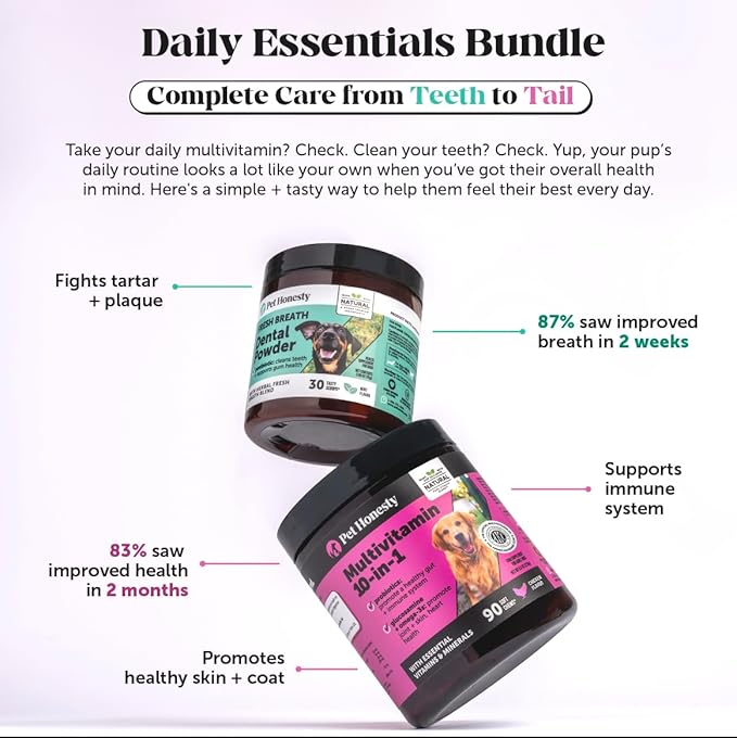 - DROOL-WORTHY TASTE: Not only does our dog dental powder support overall dental health, it’s made with a minty fresh breath blend that dogs love. In fact, 4 out of 5 dogs prefer Pet Honesty's dental powder over the competition.** based on a 3rd party feeding study. Individual results may vary. So, in addition to giving your dog something that's good for them, you'll also be giving them something that they’ll enjoy.