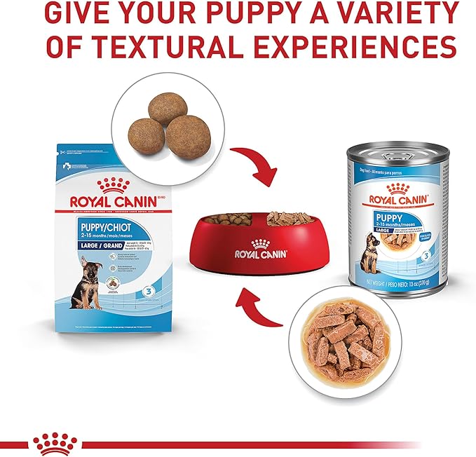 - PUPPY ESSENTIALS FOR MIXED FEEDING: Give your dog a savory textured meal by mixing in Royal Canin Large Puppy wet dog food
