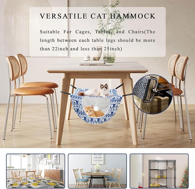 - Space-Saving & Versatile Use--Fits cages, tables, and chairs of various sizes. Adjustable straps extend up to 14 inches, and stainless steel clips ensure a secure fit. Perfect for saving space while giving your pet a cozy place to relax. Cats naturally love the enclosed, hammock-style design
