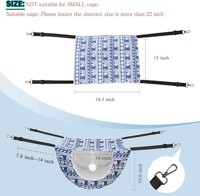 - Premium Craftsmanship & Stability--Equipped with durable zinc alloy hooks that rotate 360° for excellent weight capacity. Reinforced stitching and tough metal hooks enhance durability. The straps provide firm support, while the exquisite design ensures longevity.Note: Not suitable for small cages. Recommended cage size: shortest side over 22 inches