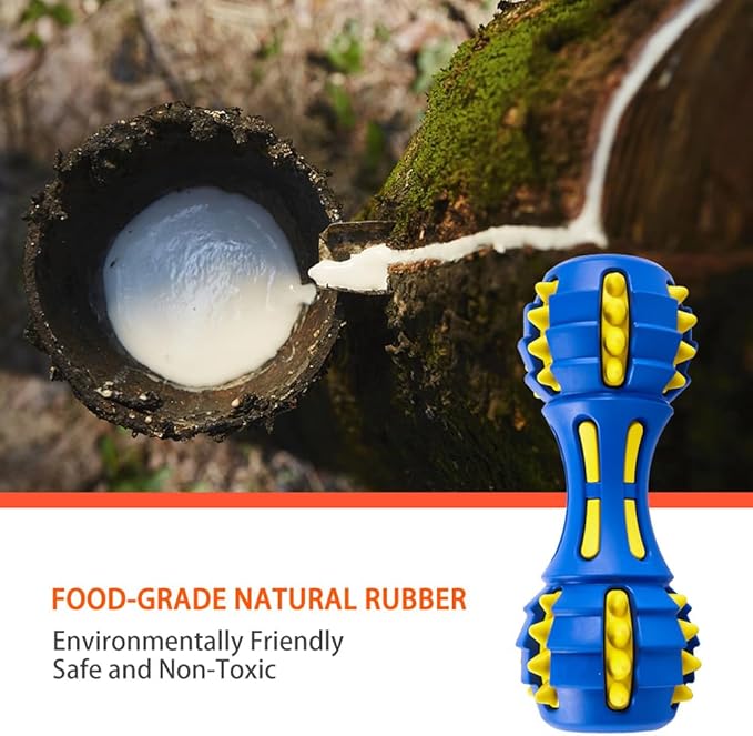 AUSCAT Teething Dog Toys, Durable Squeaky Dog Toys, Rubber Chew Toys for Dogs, Dumbbell Shape, Blue and Black