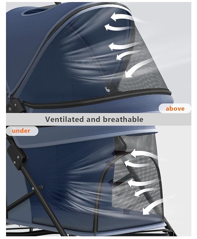 - [Upgraded Durable Materials] - Designed with high-visibility and breathable mesh, our pet stroller ensures that your pet can enjoy the view and receive ample ventilation, keeping them safe and healthy on the go. Crafted from robust 600D Oxford fabric, the stroller is not only water-resistant but also built to last, offering a secure and durable mobile haven for your furry companion.