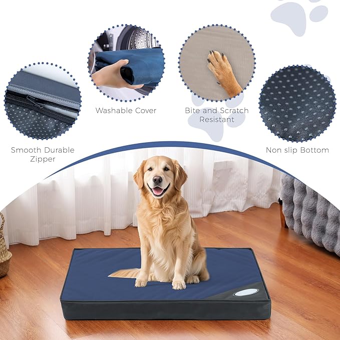 Orthopedic Outdoor Waterproof Dog Beds for Large Dogs, Washable Crate Bed with Egg Crate Foam Pet Bed Mat and Removable Oxford Fabric Cooling Cover,41"x 29", Navy