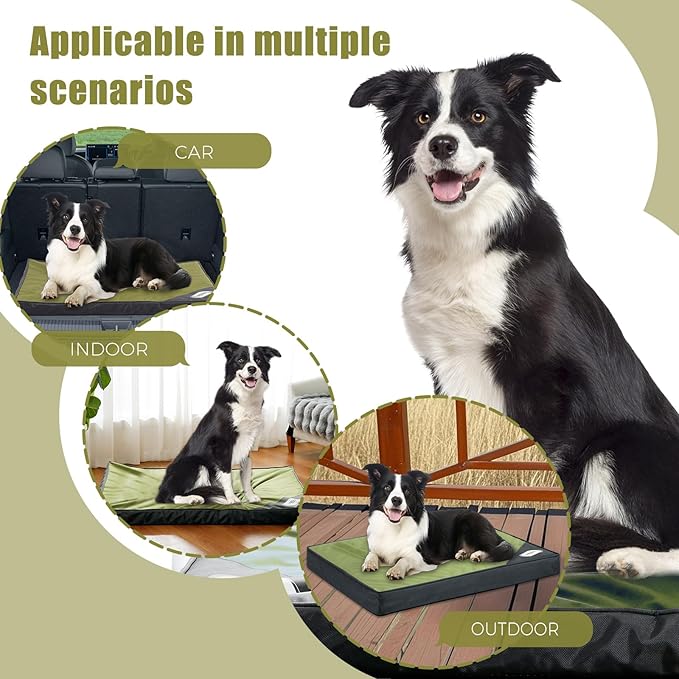 - Orthopedic Egg Crate Foam Support:Relieve joint pain and body soreness with our foam dog bed. The 3-inch orthopedic foam mat promotes airflow and weight distribution, offering perfect support for indoor naps or outdoor camping days, making it a must-have dog cooling bed