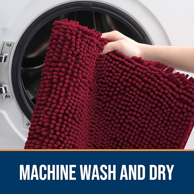 OLANLY Dog Door Mat for Muddy Paws 54x24, Absorbs Moisture and Dirt, Absorbent Non-Slip Washable Doormat, Quick Dry Chenille Mud Mat for Dogs, Entry Indoor Entryway Carpet for Inside Floor, Burgundy